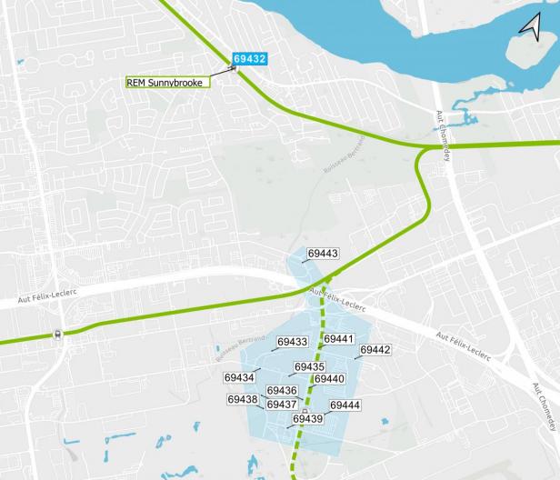 283 Technoparc Montréal shared Taxibus service run between the Sunnybrooke station and Technoparc Montréal