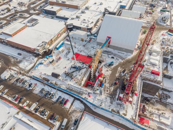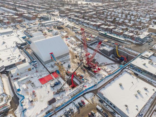 This is a key worksite for the Blue line extension, as it is where the tunnel boring machine will begin digging the métro tunnel and where all the excavated material will be removed.