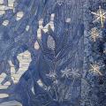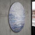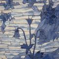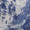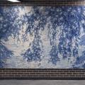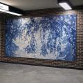 Plus bas dans l’espace souterrain, une deuxième section présente une grande mosaïque aux teintes bleutées évoquant un paysage imaginaire s’inspirant d’archives historiques. Derrière un premier plan de végétaux, un paysage dévoile une étendue d’eau lumineuse où se reflète la lumière d’un astre. Dans un dialogue entre le haut et le bas, la lumière et les reflets, le clair et le foncé, les deux sections de l’œuvre se complètent et témoignent de la mise en lumière d’une histoire souterraine du quartier.