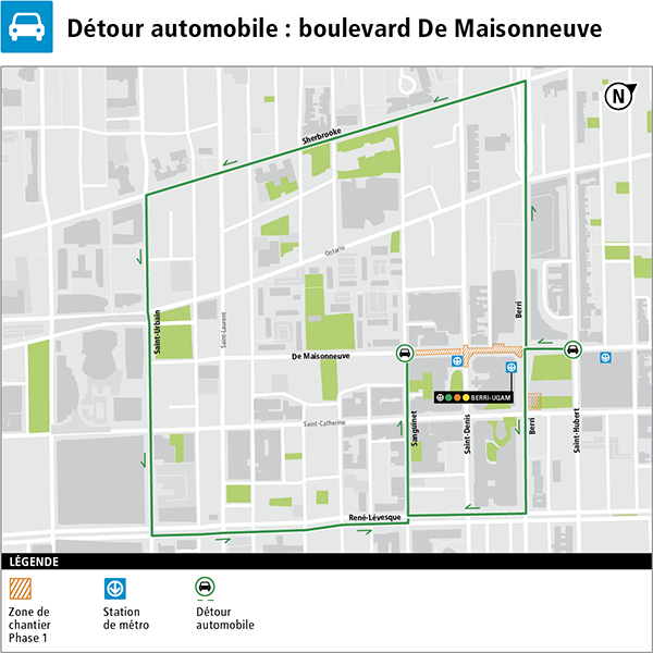 - Le boulevard De Maisonneuve Est sera fermé à la circulation entre les rues Saint-Denis et Saint-Hubert