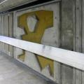 The four murals on the station’s platforms recall the theme of Expo 67, Man and His World. They represent the Titan Atlas, a character in Greek mythology, condemned by Zeus to hold up the vault of the heavens.
