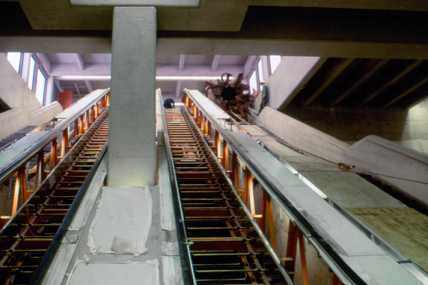C’est Robert LaPalme, peintre et caricaturiste, qui assurait la direction artistique pour l’intégration d’œuvres d’art dans les stations. Il préconisait alors l’utilisation exclusive d’œuvres figuratives qui raconteraient l’histoire de Montréal. À la station Champ-de-Mars, l’artiste Marcelle Ferron a tenu bon et a réussi à imposer une verrière totalement abstraite, certainement l’une des œuvres les plus spectaculaires du réseau. Dans les années 1970 et 1980, lors des prolongements du réseau, on a confié aux architectes le soin d’intégrer les œuvres à l’architecture dès l’étape de la conception de la station. Certains ont réalisé eux-mêmes l’œuvre alors que la majorité ont confié sa réalisation à des artistes avec qui ils ont travaillé étroitement tout au long de la construction. On voulait ainsi mieux intégrer l’art à l’architecture et lui donner toute la place qu’il mérite. Et il n’était plus question d’imposer un thème et de bannir l’art abstrait.