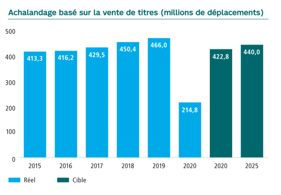 Pour mieux évaluer sa performance et se comparer, la STM a changé en 2020 son indicateur portant sur le respect de la livraison planifiée du service. Dorénavant, l’indice du taux de livraison du service du métro compare le total des kilomètres parcourus au total annuel planifié, plutôt que budgété. Selon ce nouvel indicateur, le réseau du métro a atteint un taux de 100,1 % alors que la cible annuelle était de 99,7 %. La STM dépasse ainsi pour une sixième année consécutive les cibles 2020 et 2025.
