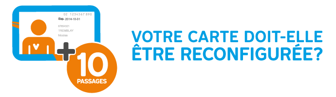 Si vous êtes venu, avant le 19 octobre 2015, renouveler une carte expirée ou qui allait expirer au cours des prochaines semaines et que vous aviez un titre 10 passages, il se peut que votre nouvelle carte doive être reconfigurée. Pour valider, cliquez ici