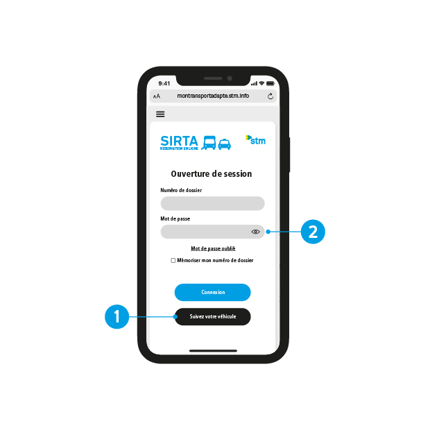 Accédez à la nouvelle fonction de localisation du véhicule en temps réel dès la page de connexion de SIRTA, ou lorsque vous y êtes connecté via le lien Suivez votre véhicule.